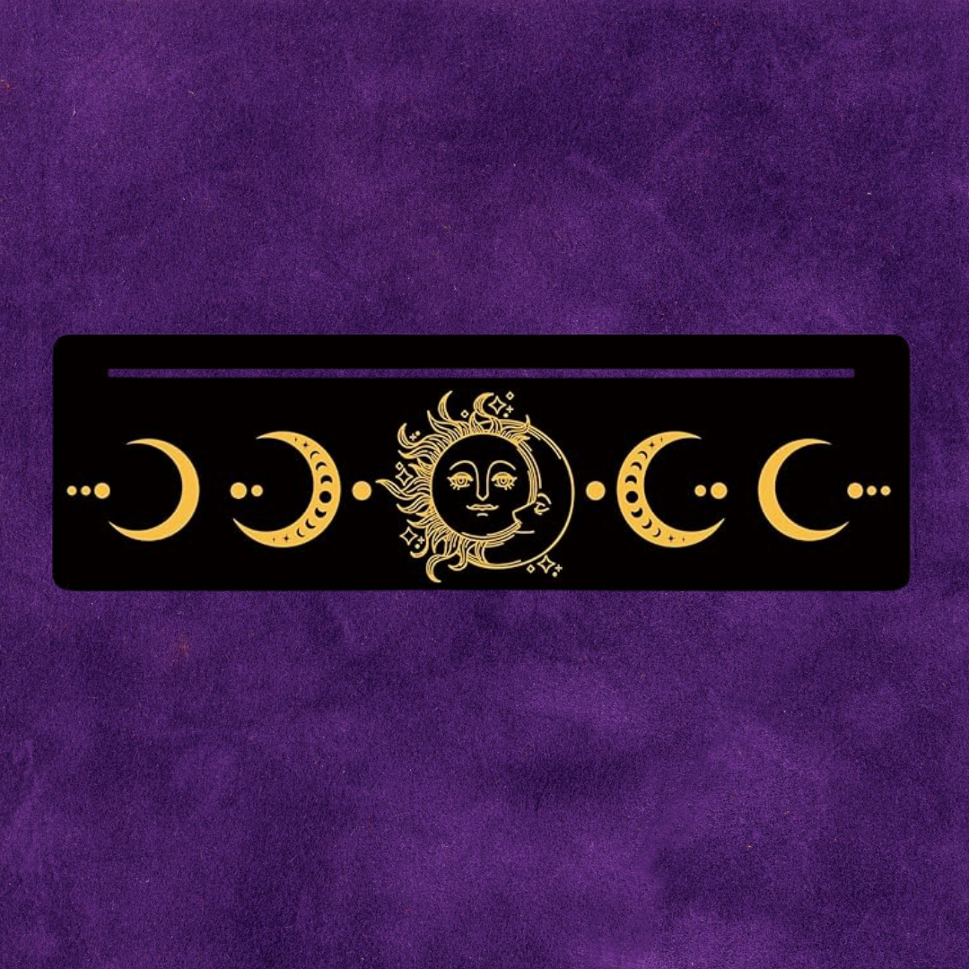 Wooden Rectangle Tarot and Oracle Card Stand with Sun and Moon Motif